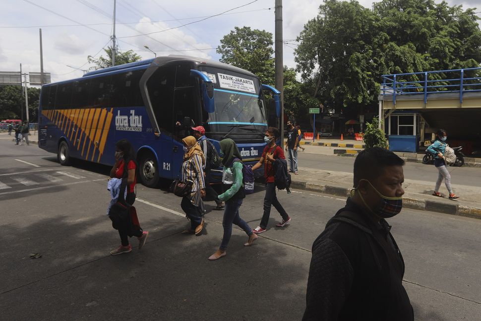 bus yang tiba di Jakarta sebanyak 34.220 penumpang, sementara pemudik