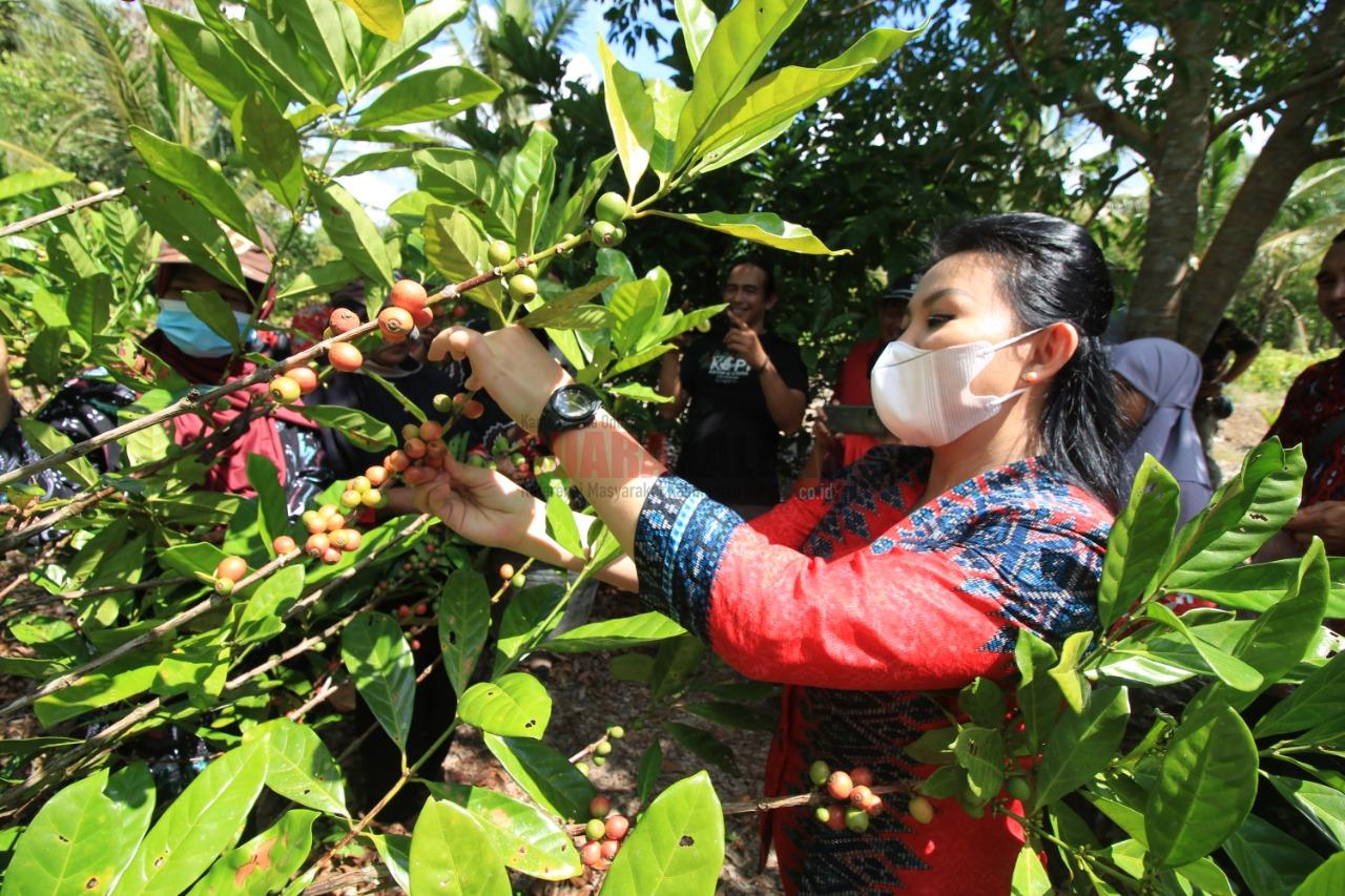 Bupati Landak Karolin saat kunker di Kayong Utara di perkebunan kopi. SUARAKALBAR.CO.ID/MC