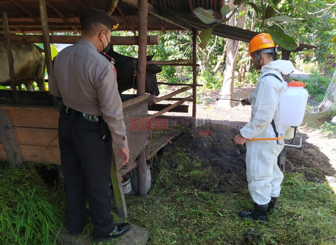 Tak hanya melakukan sosialisasi dan edukasi petugas juga melakukan penyemprotan disinfektan di seluruh kandang milik warga yang di datangi petugas.