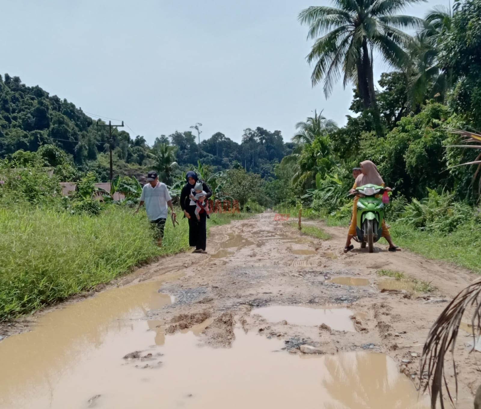 “Beberapa waktu lalu warga berupaya gotong royong jalan yang berlubang ditampal dengan tanah gunung. Namun ketika musim penghujan seperti saat ini jalan tersebut bukan lagi lubang yang kelihatan meliankan parit dengan lumpuran tanah jika dilalui pastilah licin,”katanya