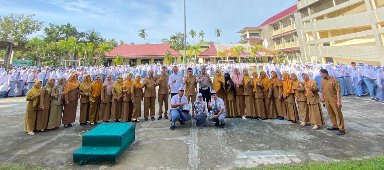 Usai upacara, kegiatan dilanjutkan dengan penyerahan Helm SNI oleh Kasat Lantas, Kasat Intelkam dan Kepala Sekolah kepada perwakilan pelajar SMAN 1 Mempawah Hilir sebagai bentuk edukasi keselamatan berlalu lintas.