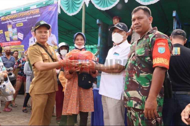 Singkawang (Suara Kalbar)- Pemerintah Kota Singkawang melalui Dinas Perindustrian, Perdagangan Koperasi dan UKM Kota Singkawang menggelar Operasi Pasar (OP) dengan mendistribusikan 1.250 paket di Pasar Semi Modern Ali Anyang, Selasa (7/3/2023).