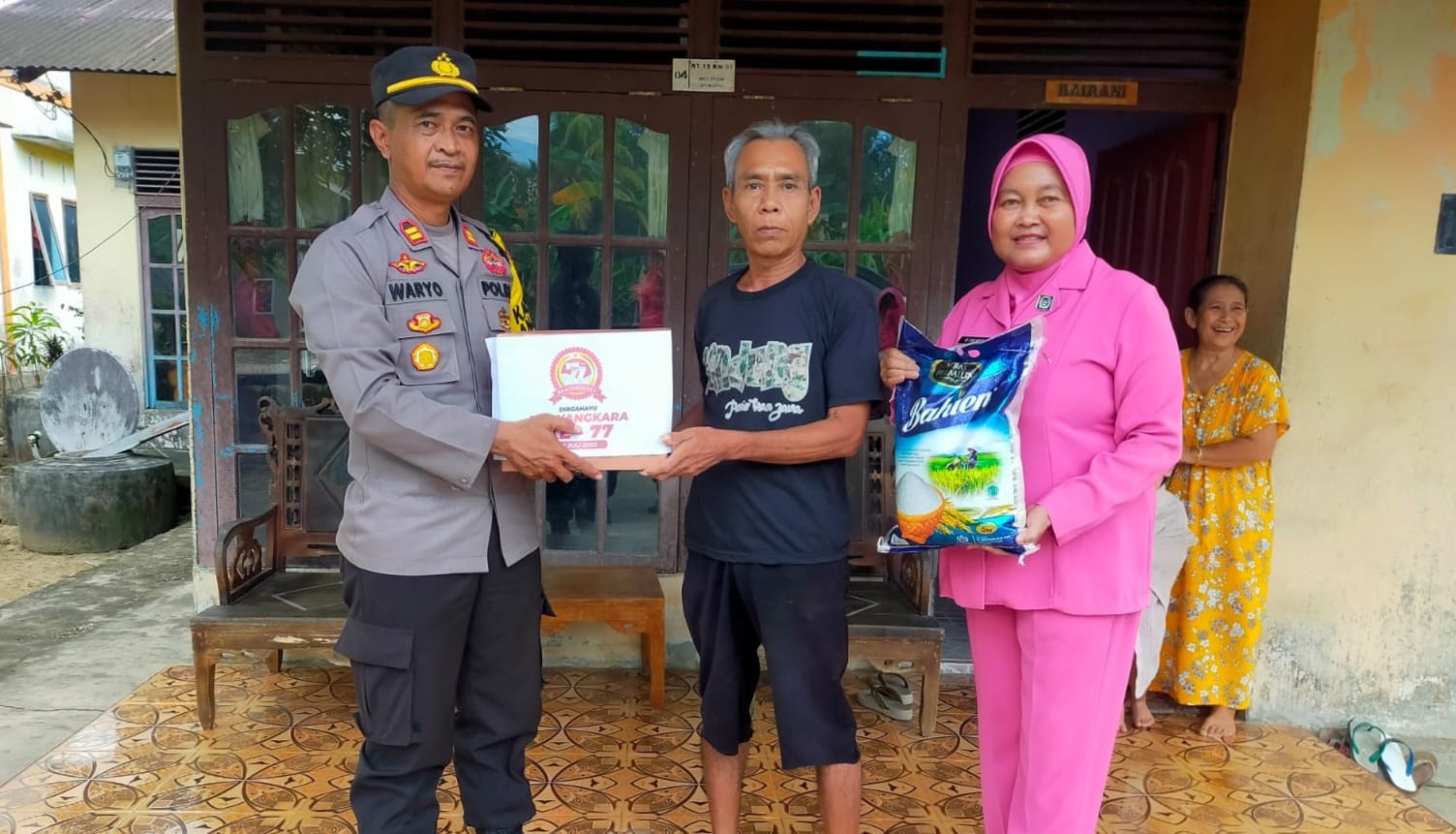 Hari Bhayangkara ke-77, Kapolsek Anjongan Iptu Waryo Blusukan Salurkan Bantuan Sosial