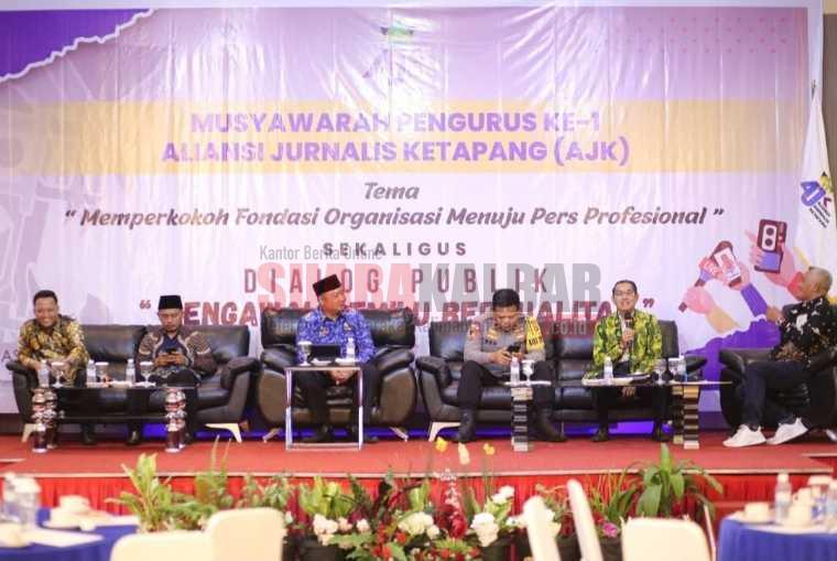 Ketapang (Suara Ketapang) – Aliansi Jurnalis Ketapang (AJK) mengelar dialog publik bertajuk mengawal pemilu berkualitas yang dipadukan dengan musyawarah pengurus ke-1, di Hotel Aston Ketapang, Senin (17/7/2023).