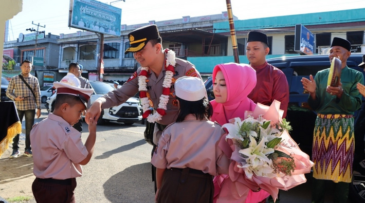 Kedatangan Kapolres Ketapang AKBP Tommy Ferdian beserta Ibu Ketua Bhayangkari Cabang Ketapang Ny Suci Tommy Ferdian di Mapolres Ketapang disambut langsung Pejabat lama Kapolres Ketapang AKBP Laba Meliala beserta Istri, jajaran pejabat utama, pengurus Bhayangkari dan Kapolsek Jajaran Polres Ketapang.