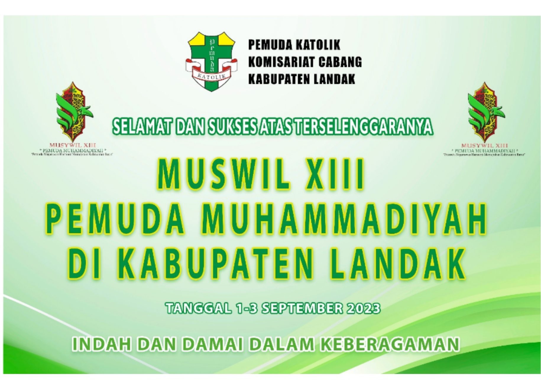 “Kami dari organisasi kepemudaan berbasis agama Kristiani akan selalu menjaga sinergi dan toleransi antar umat beragama. Salah satu bentuk nyata dukungan kami adalah dengan menjaga, merawat, serta memberikan ucapan selamat atas terselenggaranya Muswil XIII Pemuda Muhammadiyah di Kabupaten Landak pada tanggal 1-3 September 2023. Kami berharap agar pelaksanaan acara ini berjalan dengan damai dan aman,”katanya dalam keterangan yang diterima Suarakalbar.co.id, Selasa (29/8/2023).