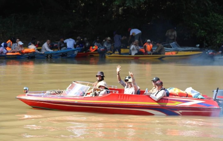 Ketapang (Suara Kalbar) – Puluhan Speedboat peserta susur sungai Napak Tilas Kabupaten Ketapang mengarungi sungai, mulai dari Desa Nanga Kelampai Kecamatan Tumbang Titi menuju Teluk Keluang Desa Pesaguan Kanan, Kecamatan Matan Hilir Selatan, Kamis (26/10/2023).