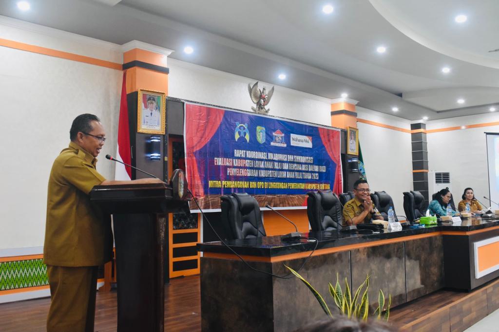 Sintang (Suara Kalbar)-Wakil Bupati Sintang, Melkianus, membuka pelaksanaan rapat koordinasi, kolaborasi dan sinkronisasi evaluasi Kabupaten Layak Anak dan Rencana Aksi Daerah Penyelenggaraan KLA Tahun 2023 di Balai Praja Kantor Bupati Sintang pada Senin, (06/11/2023).
