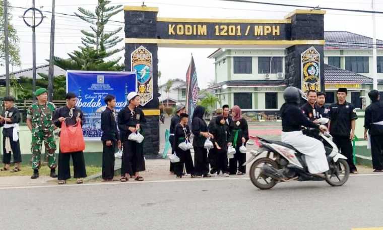 Dalam aksi itu, sejumlah personel Kodim 1201 dan para generasi muda dari perguruan pencak silat ini secara humanis menghentikan kendaraan yang melintas.