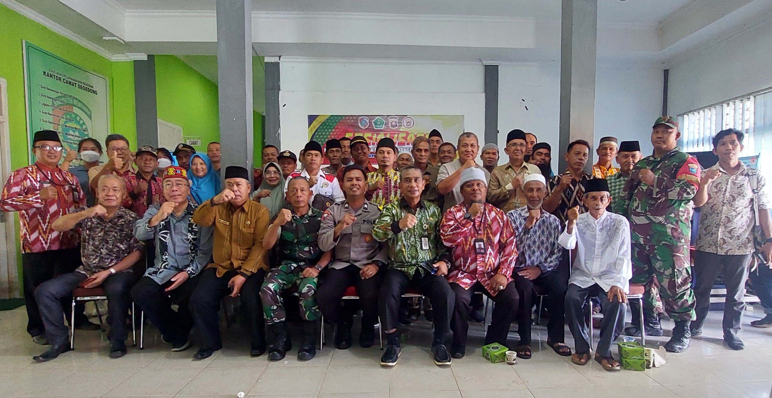 Hal tersebut tertuang dalam deklarasi bersama usai Sosialisasi Moderasi Beragama untuk menangkal Radikalisme di Kantor Camat Segedong, Kamis (13/6/2024).