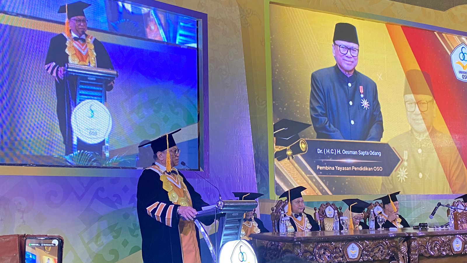 Selain itu, Pendiri sekaligus Pembina Yayasan Pendidikan OSO, Dr. H.Oesman Sapta Odang mengatakan, ia menyampaikan ucapan terima kasih kepada selurub orang tua mahasiswa dan mahasiswi.