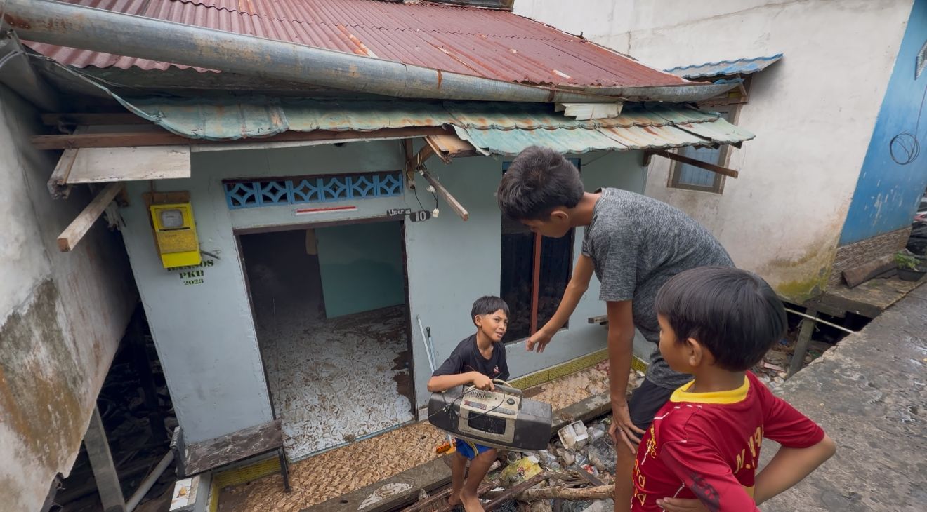 Menurut Umar, rumah panggung yang ditempatinya bersama keluarga sudah beberapa kali terasa goyah saat air pasang tinggi. Ia sempat mencoba memperkuat pondasi dengan menambah material tambahan agar bangunan lebih stabil.