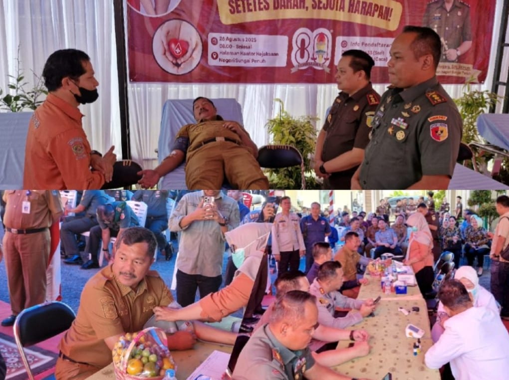 Kerinci (Suara Kalbar) – Bupati Kerinci Monadi menghadiri kegiatan donor darah dalam rangka memperingati Hari Lahir Kejaksaan Republik Indonesia ke-80 tahun 2025. Kegiatan sosial ini digelar oleh Kejaksaan Negeri Sungai Penuh pada Selasa (26/8/2025) bertempat di Halaman Kantor Kejaksaan Negeri Sungai Penuh.