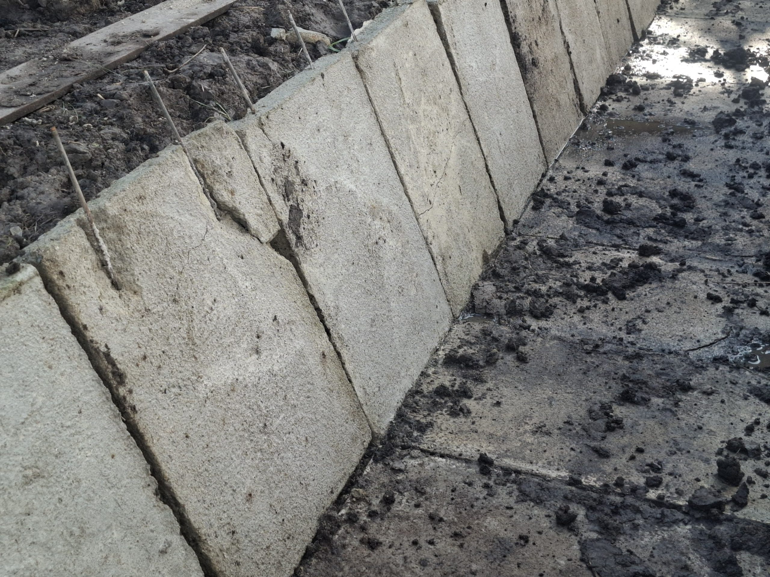 Pantauan di lapangan menunjukkan adanya sejumlah kerusakan pada beton dinding dan lantai saluran irigasi yang tampak retak. Bahkan, pengerjaan cerucuk kayu yang seharusnya menopang struktur lantai diduga tidak dipasang, sehingga dikhawatirkan mengurangi kekuatan dan umur konstruksi.
