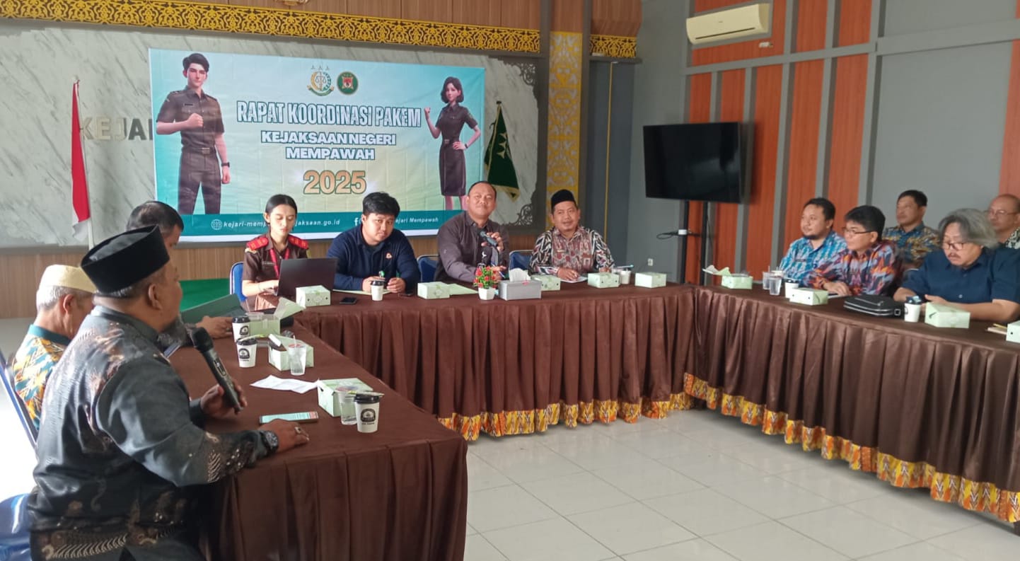 Mempawah (Suara Kalbar) – Kejaksaan Negeri (Kejari) Mempawah menggelar Rapat Koordinasi Pengawasan Aliran Kepercayaan dan Keagamaan Masyarakat (PAKEM) di Aula Kantor Kejari Mempawah, Kamis (13/11/2025).