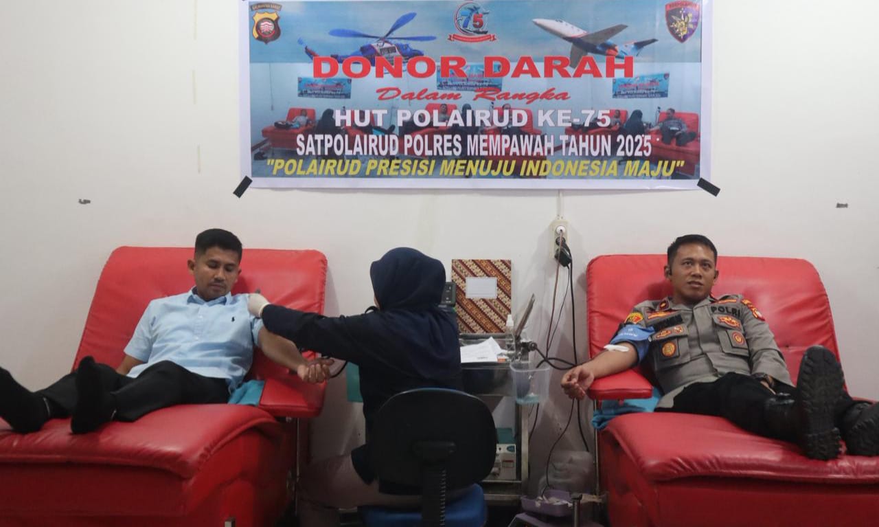 Mempawah (Suara Kalbar) – Memperingati Hari Ulang Tahun (HUT) ke-75, Satuan Polisi Air dan Udara (Satpolairud) Polres Mempawah Polda Kalimantan Barat menggelar kegiatan donor darah di Markas UDD PMI Mempawah, Selasa (11/11/2025) pagi.