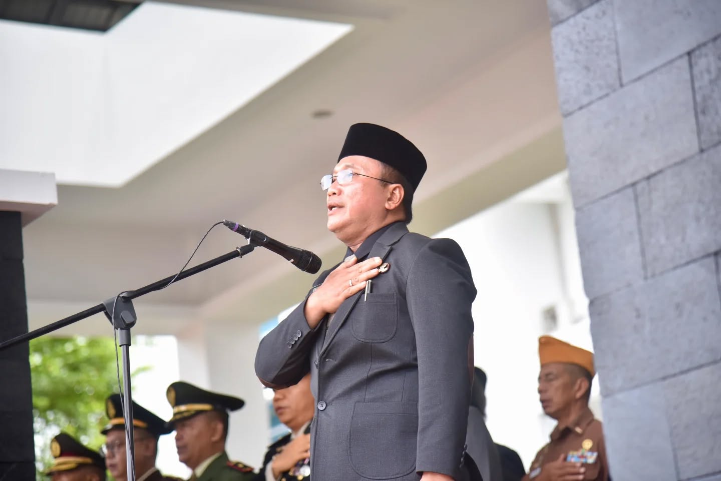 Bupati Kubu Raya Sujiwo saat menjadi Inspektur Upacara Peringatan Hari Pahlawan, di Halaman Kantor Bupati Kubu Raya Senin (10/11/2025).[Suarakalbar.co.id/Septa H]