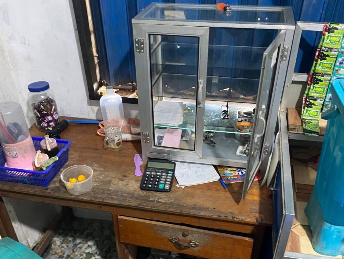 Dari keterangan yang dihimpun, pelaku diduga masuk ke dalam kafe dan menggasak sejumlah barang berharga. Korban dilaporkan kehilangan uang tunai, tabung gas, serta beberapa perlengkapan usaha lainnya.