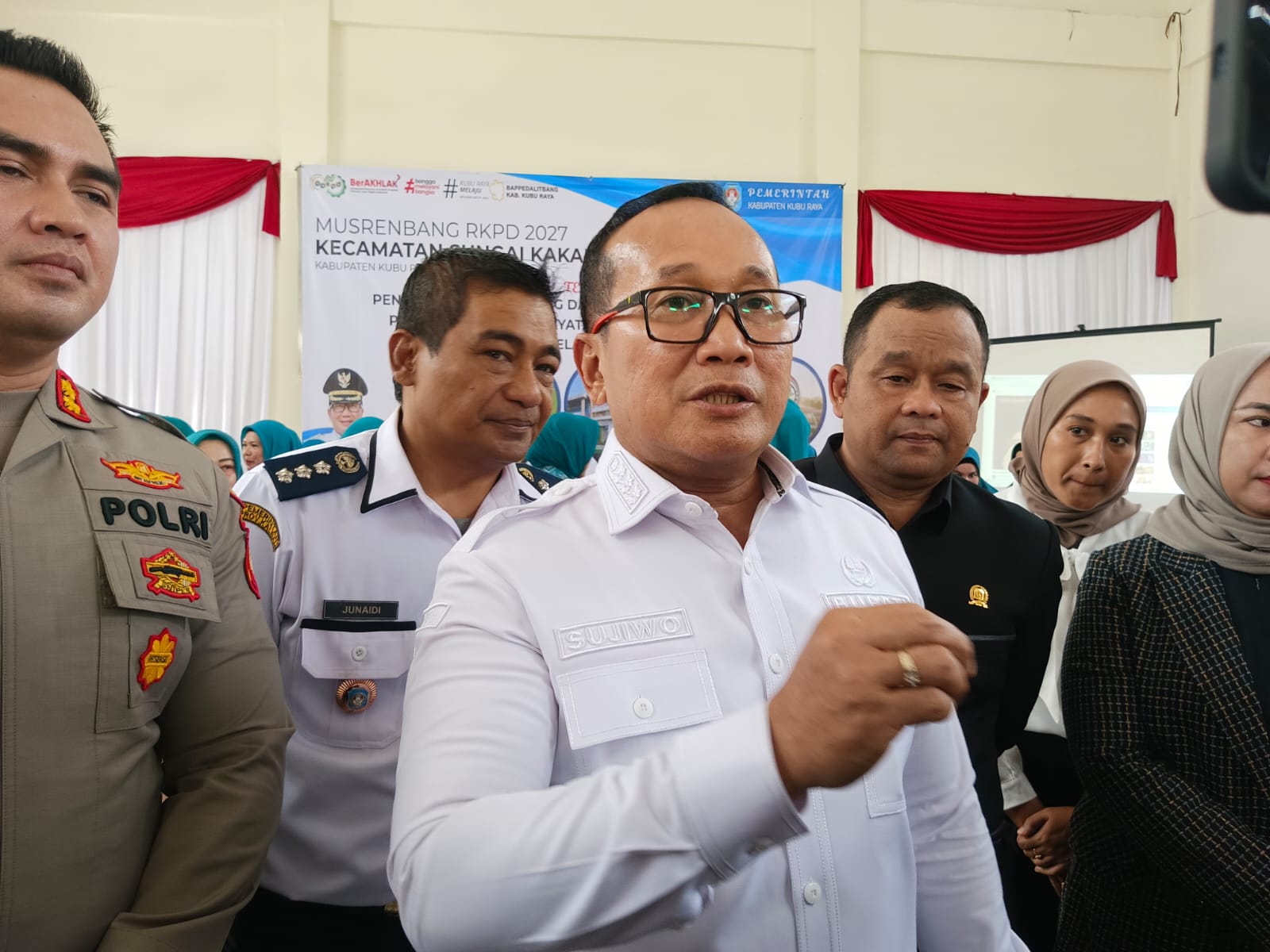Bupati Kubu Raya Sujiwo, Saat Menghadiri Acara Murenbang Kecamatan Sungai Kakap, Kubu Raya. Rabu (28/01/2026). SUARAKALBAR.CO.ID/Ain