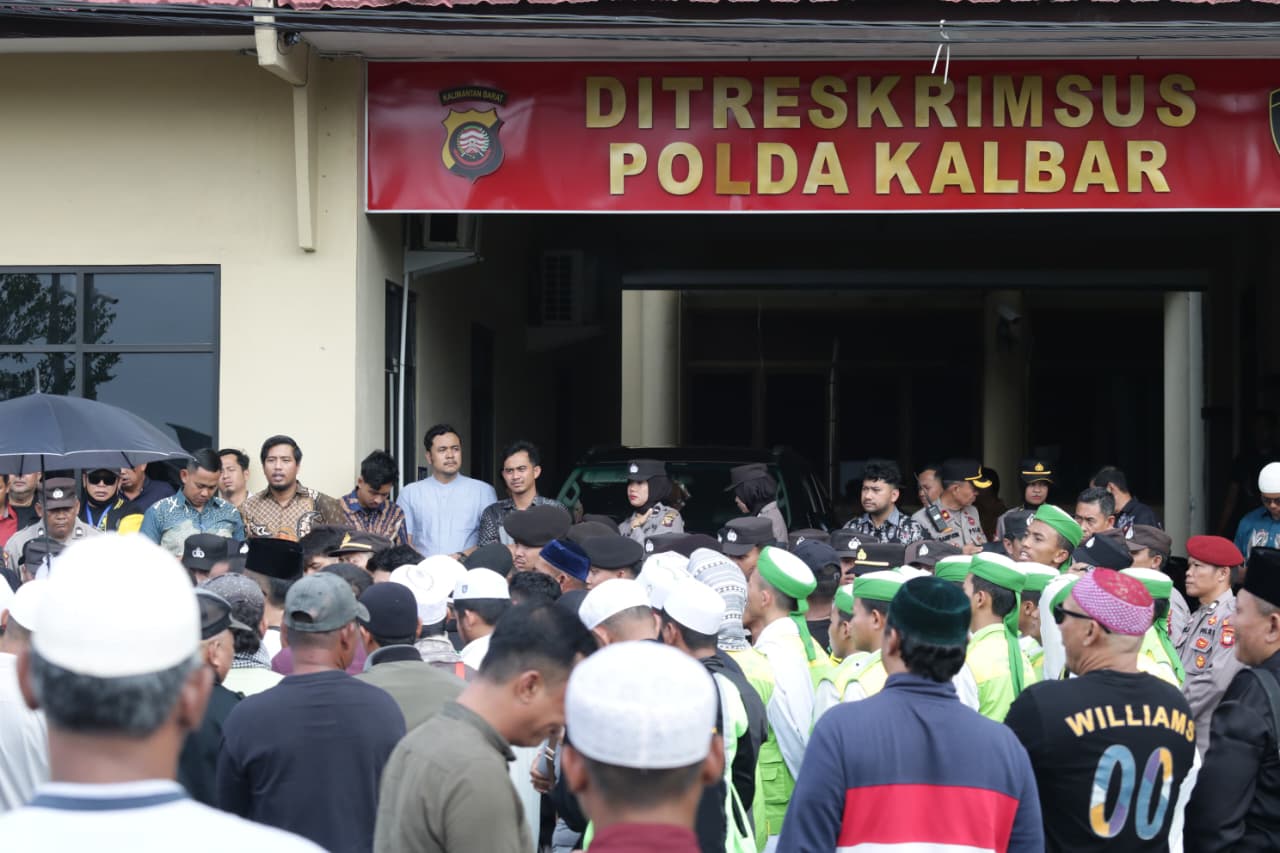 Pontianak (Suara Kalbar) – Ratusan massa yang tergabung dalam Aliansi Umat Islam Bersatu Kalimantan Barat (Kalbar) bersama sejumlah organisasi kemasyarakatan (ormas) mendatangi Markas Kepolisian Daerah Kalimantan Barat, Jumat (9/1/2026).