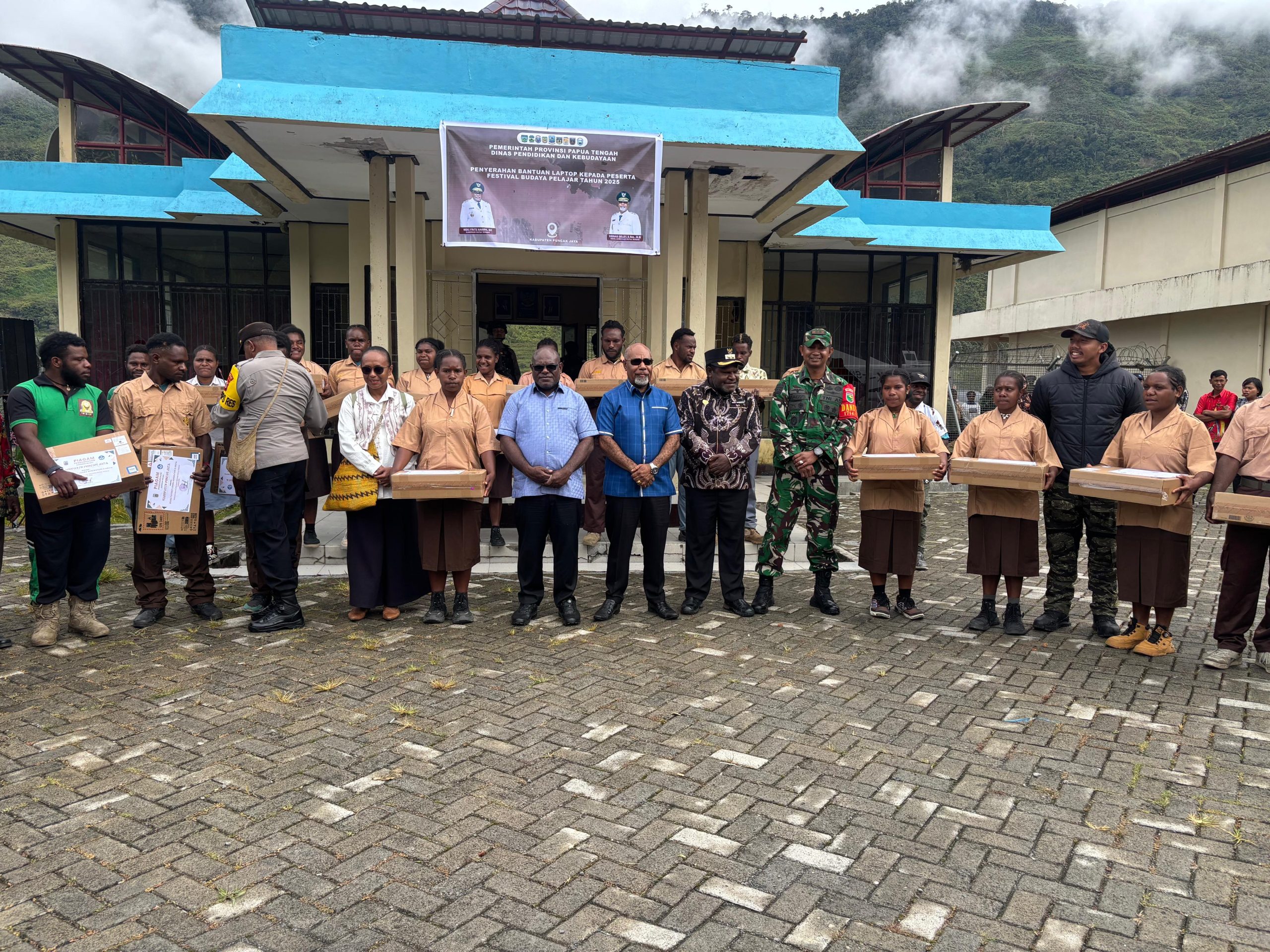 Gubernur menyerahkan laptop kepada pelajar di dua kabupaten pegunungan tersebut sebagai dukungan pendidikan di era digital.