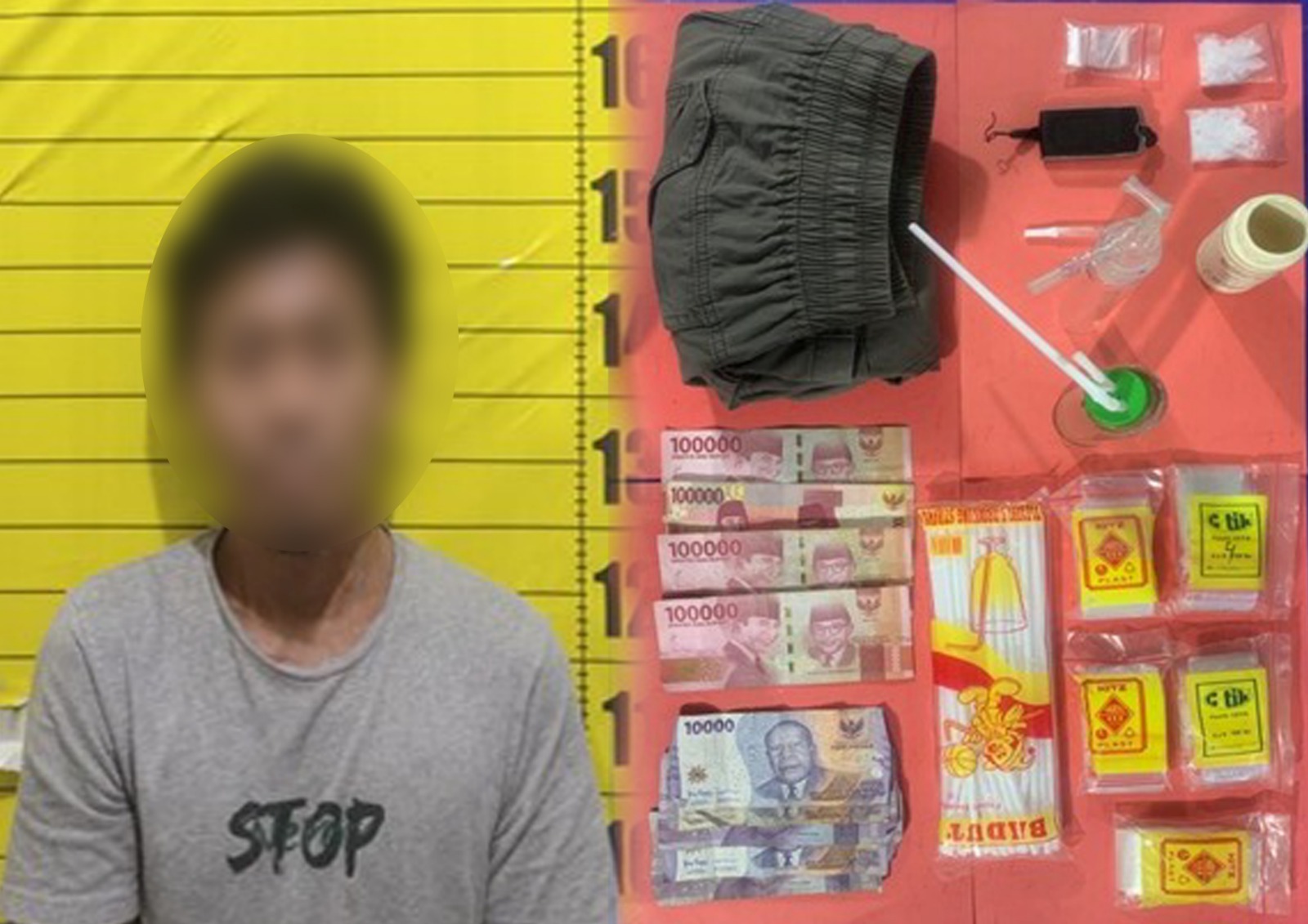 “Petugas kemudian membawa pelaku menuju rumah walet dimaksud. Sekitar pukul 01.55 WIB, dilakukan penggeledahan di lokasi tersebut dengan disaksikan pihak terkait. Dari hasil penggeledahan, petugas menemukan dua paket plastik bening berklip yang diduga berisi narkotika jenis sabu,”ujarnya.