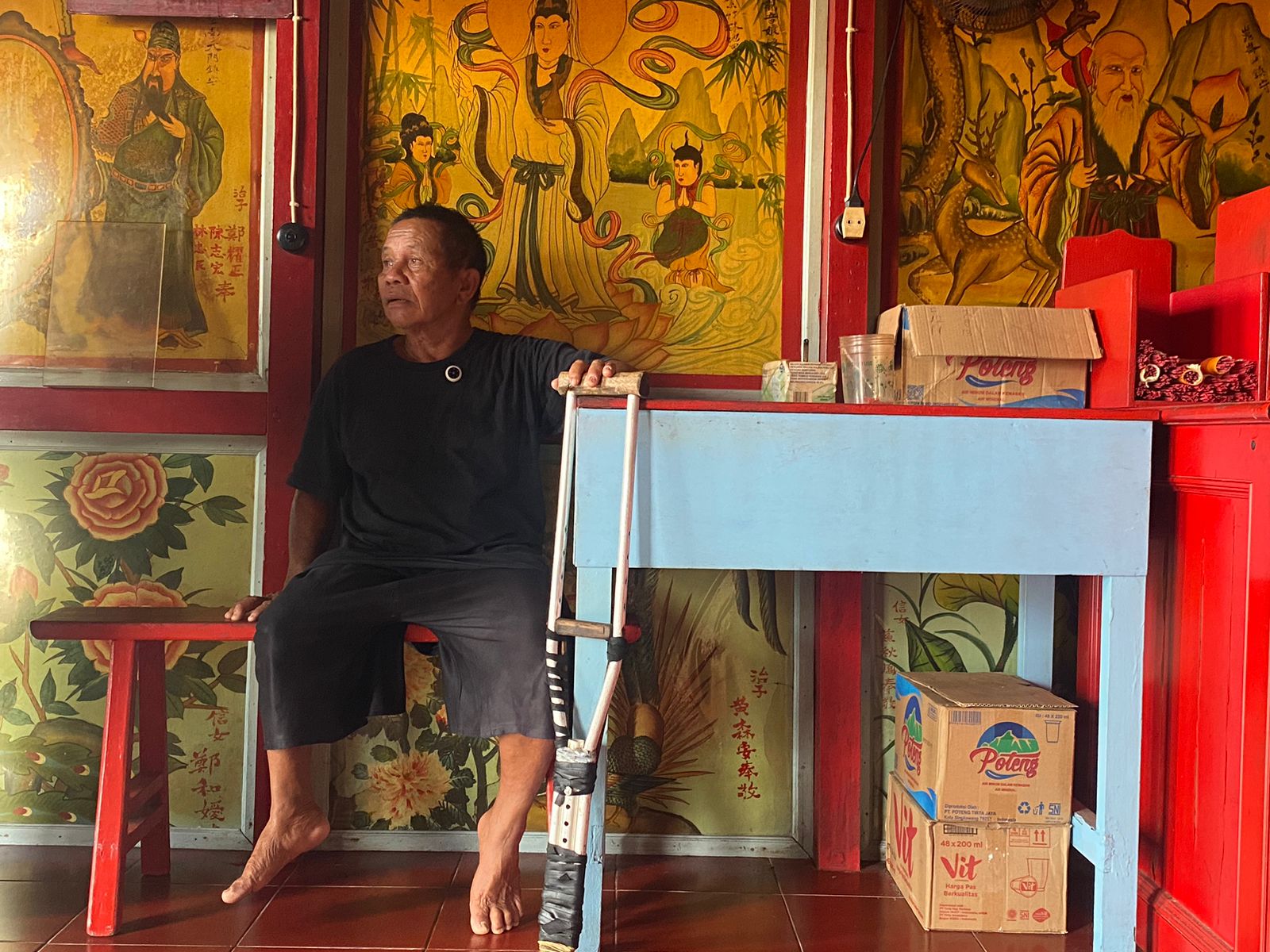 “Jadi dulu saya jaga pekong (kelenteng) ini dengan bayaran 400 ribu rupiah, setelah itu saya berhenti, mana cukup 400 ribu jadi akhirnya saya berhenti,” ujarnya saat ditemui ketika menjaga kelenteng pada Rabu (04/02/2026).