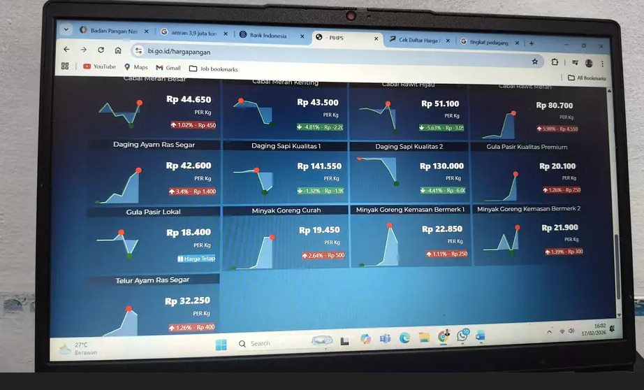 Berdasarkan data PIHPS per Selasa (17/2/2026) pukul 16.00 WIB, harga pangan di tingkat pedagang tradisional di seluruh provinsi menunjukkan variasi, terutama pada komoditas hortikultura dan protein hewani yang kerap berfluktuasi saat hari besar keagamaan.