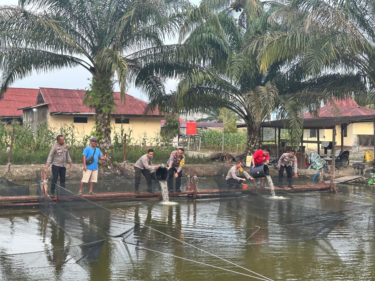 “Sebanyak 3.000 ekor benih ikan lele dan patin kami tabur di dua kolam yang berada di belakang Polsek Nanga Pinoh,” jelas AKBP Harris.