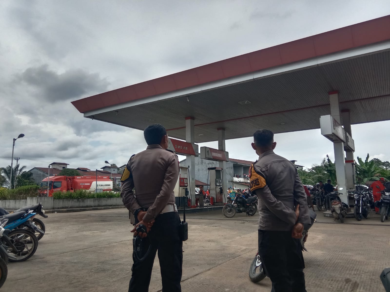 Sejak pagi hari, aparat kepolisian telah berada di lokasi untuk melakukan pengamanan sekaligus pengaturan arus lalu lintas di sekitar SPBU.