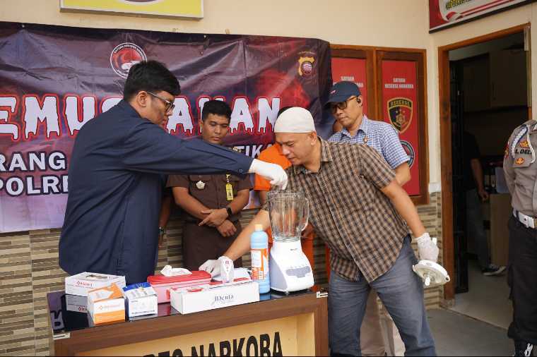 Kemudian, Setelah dipastikan keaslian barang bukti sabu tersebut dimusnahkan dengan cara dimasukkan ke dalam blender, dicampur air dan cairan pembersih lantai, kemudian diaduk hingga larut dan dibuang ke septic tank. Proses ini dilakukan sesuai prosedur dan ketentuan hukum yang berlaku, serta disaksikan langsung oleh seluruh pihak yang hadir.