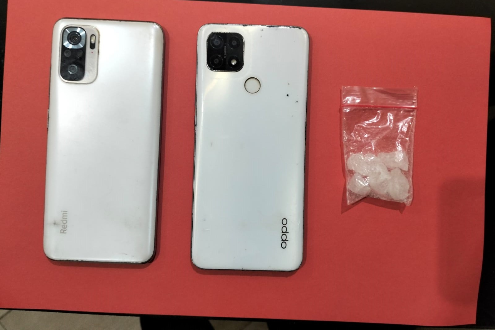Dari hasil penggeledahan di Tempat Kejadian Perkara (TKP) terhadap kedua pelaku, petugas kami berhasil mengamankan barang bukti diduga narkotika jenis Sabu dengan berat kotor sejumlah 10,83 gram. Dan kepada kedua pelaku kami juga berhasil mengamankan dua alat bukti lainnya seperti satu handphone merk Readmi warna putih dan satu unit handphone merek Oppo warna putih.