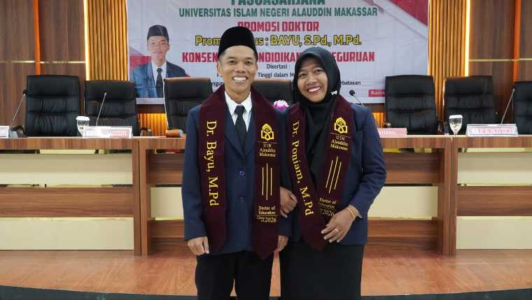 Makassar (Suara Kalbar) – Kabar membanggakan datang dari dunia akademik Kabupaten Sambas, Kalimantan Barat. Pasangan suami istri, Bayu dan Poniam, berhasil meraih gelar doktor secara bersamaan pada program Pascasarjana konsentrasi Pendidikan dan Keguruan di UIN Alauddin Makassar. Prosesi promosi doktor tersebut dilaksanakan pada Kamis (16/4/2026).