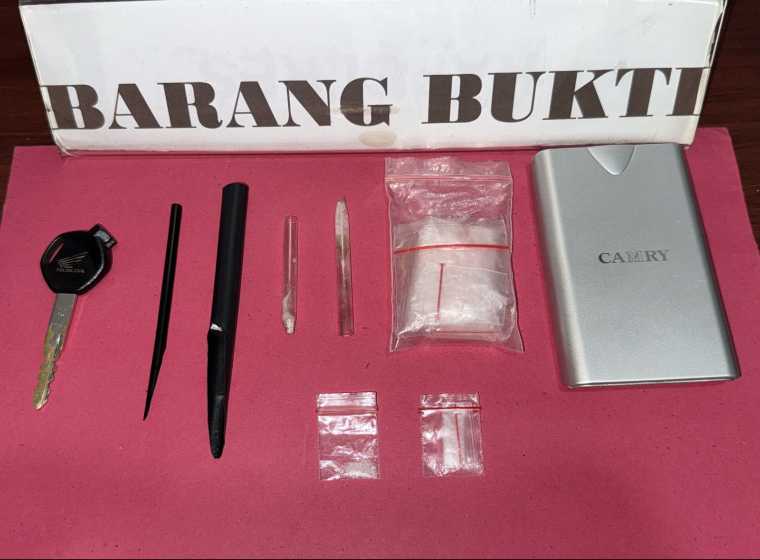 Dari hasil penggeledahan terhadap R, petugas menemukan satu plastik klip transparan berisi kristal diduga sabu dengan berat bruto 1,06 gram di saku celana sebelah kanan. Selain itu, ditemukan satu plastik klip kosong dan satu sendok dari potongan pipet di saku jaket sebelah kanan, serta sejumlah plastik klip kosong di saku jaket sebelah kiri.